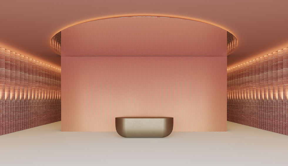 Reflecting the company's role in rebranding and revitalizing original goods, the materials are introduced to perform beyond their basic forms. The stone walls are grooved, slatted, and integrated with lighting, allowing them to function as sculptural elements. The art wall with light installation further transcends the function of lighting and creates an optical illusion that alters the perception of the surface.